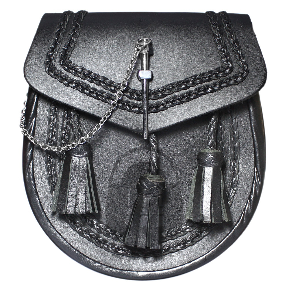 Black Leather Sporran with Lock